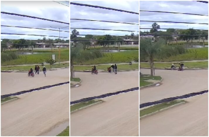 Ayer por la tarde, dos estudiantes que asisten a la escuela E.E.S. N°85 “Eva Duarte” de Barranqueras, ubicada en la intersección de las calles Sauce y Carlos Hardy, fueron asaltados y todo quedó registrado en una cámara de seguridad.