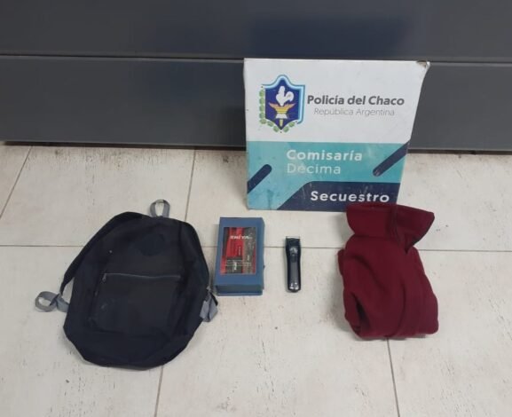 Al seguirlo y detenerlo, lesionó a un uniformado. Al verificar el interior de la mochila, constataron que llevaba un par de zapatillas, un teléfono celular, un anteojo de receta, dos relojes digitales y la suma de 30 mil pesos.