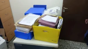 Según el informe de la Policía eran 12 cajas en total. Las mismas eran de diversos tamaños y contenían diferentes tipos de documentos. Los uniformados procedieron a fotografiar el material y labraron el acta correspondiente. Por su parte, la denunciada debió dejar la llave de su oficina junto con la documentación.