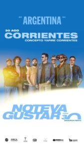 La icónica banda uruguaya No Te Va Gustar (NTVG) continúa la celebración por sus 30 años de carrera con un show especial en Corrientes el próximo viernes 30 de agosto en Concepto Yapiré. Este concierto forma parte de la segunda etapa de su Gira “30 años”, en la cual también promocionan su reciente lanzamiento: el EP en vivo “Portal Sessions No Te Va Gustar”, que incluye una versión del tema “Como un cuento” de la banda argentina Divididos. Las entradas para este evento siguen disponibles en www.butacauno.com.ar, y para más información, podes seguir en Instagram a @musicasinetiquetas.