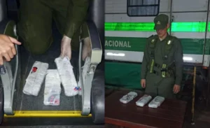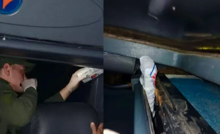 Durante la inspección, los gendarmes descubrieron tres “panes” de marihuana escondidos en el compartimiento del aire acondicionado. El can detector de narcóticos “Olivia” fue clave en el hallazgo, ya que reaccionó al pasar por una mochila cercana a los paquetes sospechosos.