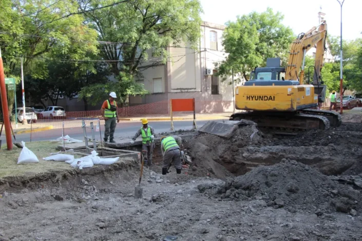 Se avanzó con el cateo de los caños existentes, con una excavadora y un martillo percutor para rotura de bache. Para esta tarea fueron afectados seis obreros y el ritmo es bueno.